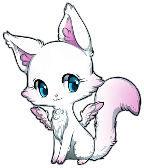 Kittie Kitsuneko -- White Fox/Cat with Pink tipped; (large)ears, (fox)tail, wings and paws, white tuff on chest and bright blue eyes.